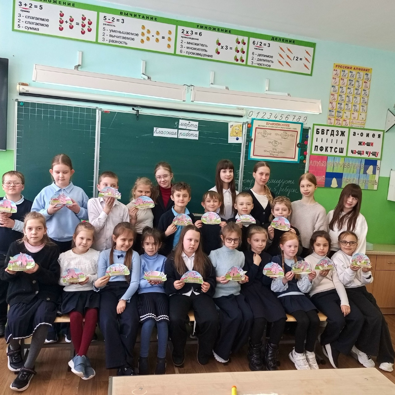 Малыши мастерили открытки для мам и бабушек к 8 марта, а шестиклассники помогали им воплотить идеи в жизнь. Результат превзошёл себя: каждая открытка получилась уникальной и очень искренней.