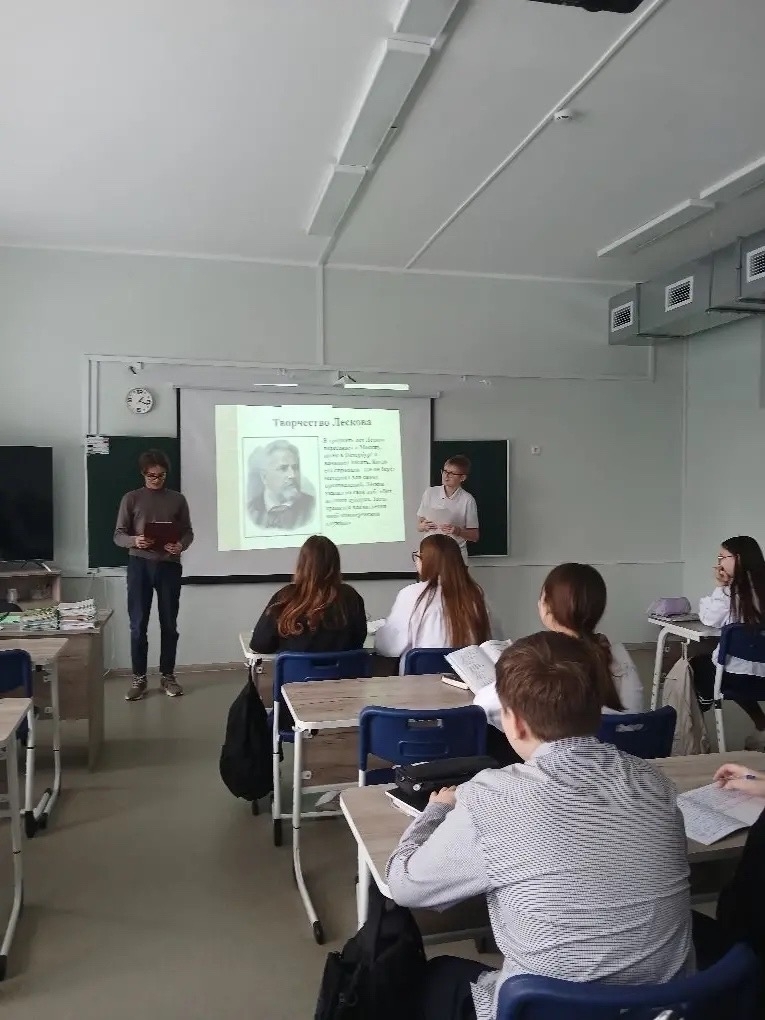 Ребята говорили о непростом пути «очарованного странника» русской литературы, вспоминали знакомые с детства произведения и открывали для себя новые грани таланта Лескова. Познакомились с особенностями лесковского стиля, его умением сочетать бытовую достоверность с философской глубиной, а также с тем, как в его героях отразилась сложность и красота русской души.