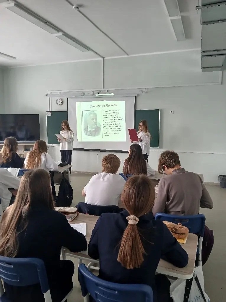 В часть этого события в 7 "д" классе прошел литературный час «Очарованный Русью странник», посвященный творчеству писателя, без которого невозможно представить русскую литературу XIX века. Вместе с учителем русского языка и литературы Е.И. Мещеряковой школьники отправились в удивительное путешествие по страницам его жизни и творчества.