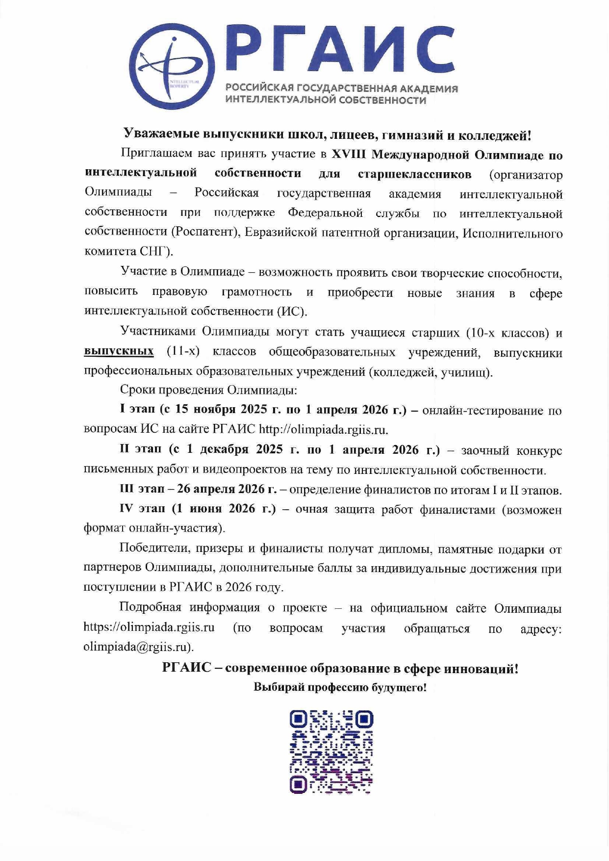 XVIII Международной Олимпиады по интеллектуальной собственности для старшеклассников