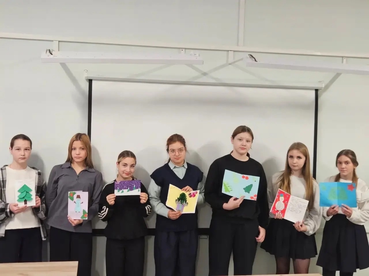 Учащиеся 6-7 классов вместе с учителем технологии Калининой Е.Н. присоединились к этой патриотической акции. Ребята создали праздничные открытки для военнослужащих — с поздравлениями, рисунками и словами поддержки. Каждая открытка — это маленький огонёк тепла, который отправится туда, где особенно ждут поддержки и добрых вестей. Пусть эти послания станут для защитников новогодним чудом и напомнят, что их подвиг ценят и о них помнят! «Это важно — сказать спасибо тем, кто нас защищает», — говорят школьники.