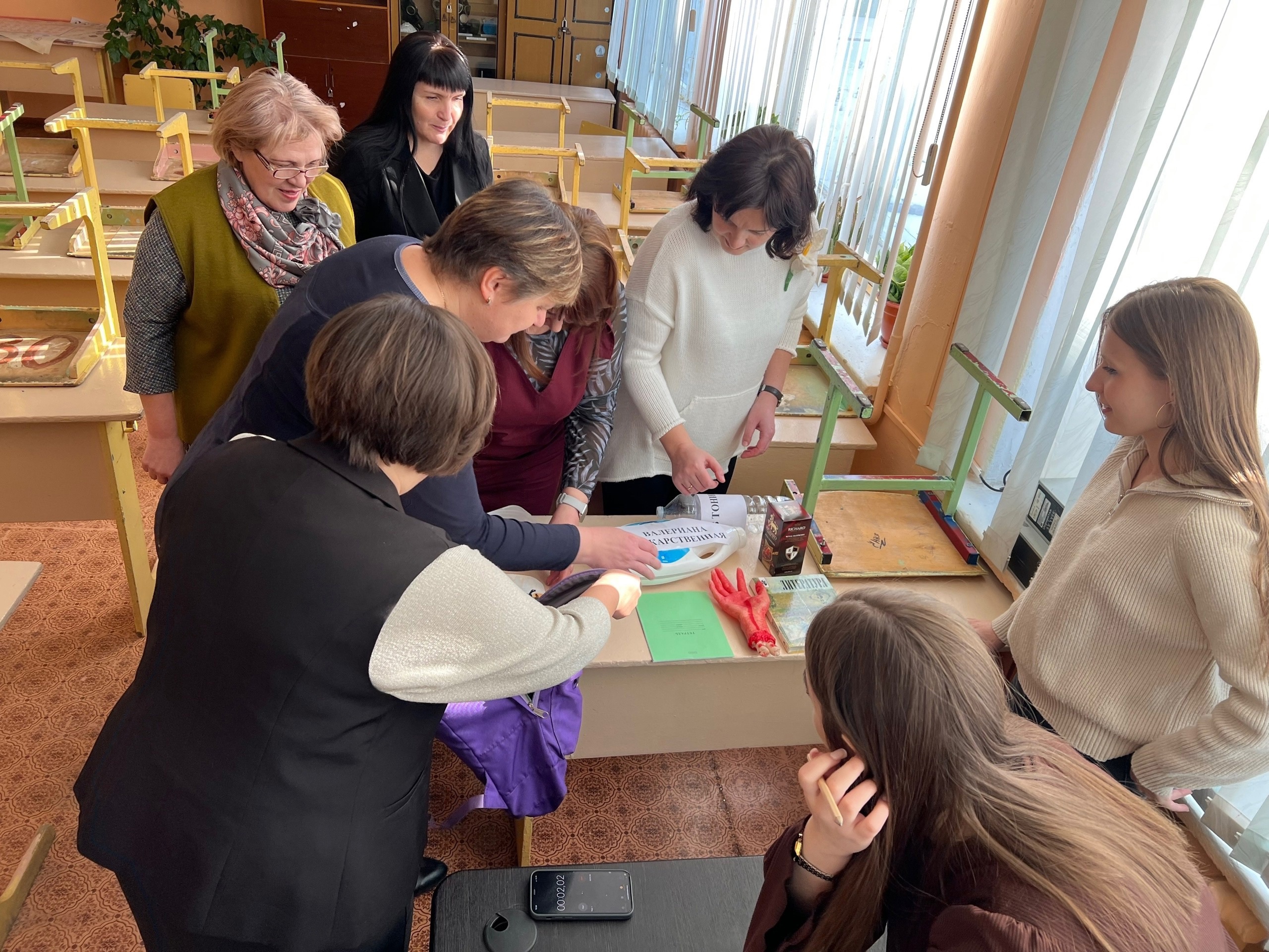 Далее программа дня продолжилась интересным и эмоционально-заряжающим мероприятием для педагогов в формате КВЕСТА, в рамках которого учащиеся 9 «А и 9 «В» классов организовали "Весёлые уроки" для учителей в честь Дня рождения школы. Принимали участие 3 команды: «Знатоки» - администрация школы, «Эрудиты» - учителя предметники и «Умники» - учителя-организаторы. Получив маршрутные листы, командам предстояло посетить 5 станций: «Интеллектуалы», «Театралы», «Музыканты», «Экспериментаторы», «Собери портфель», «Переводчики», «Собери слова»