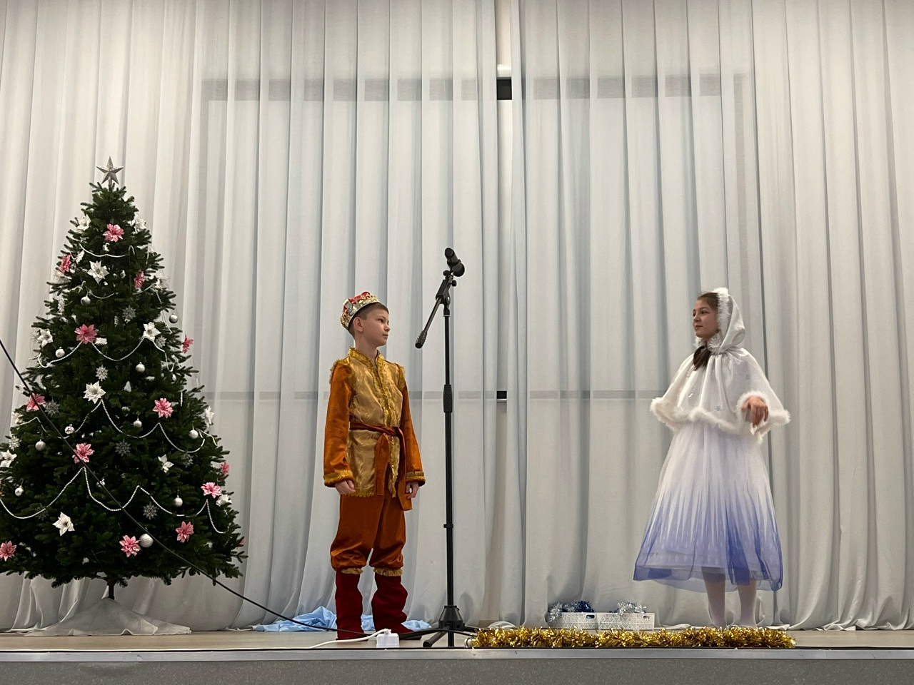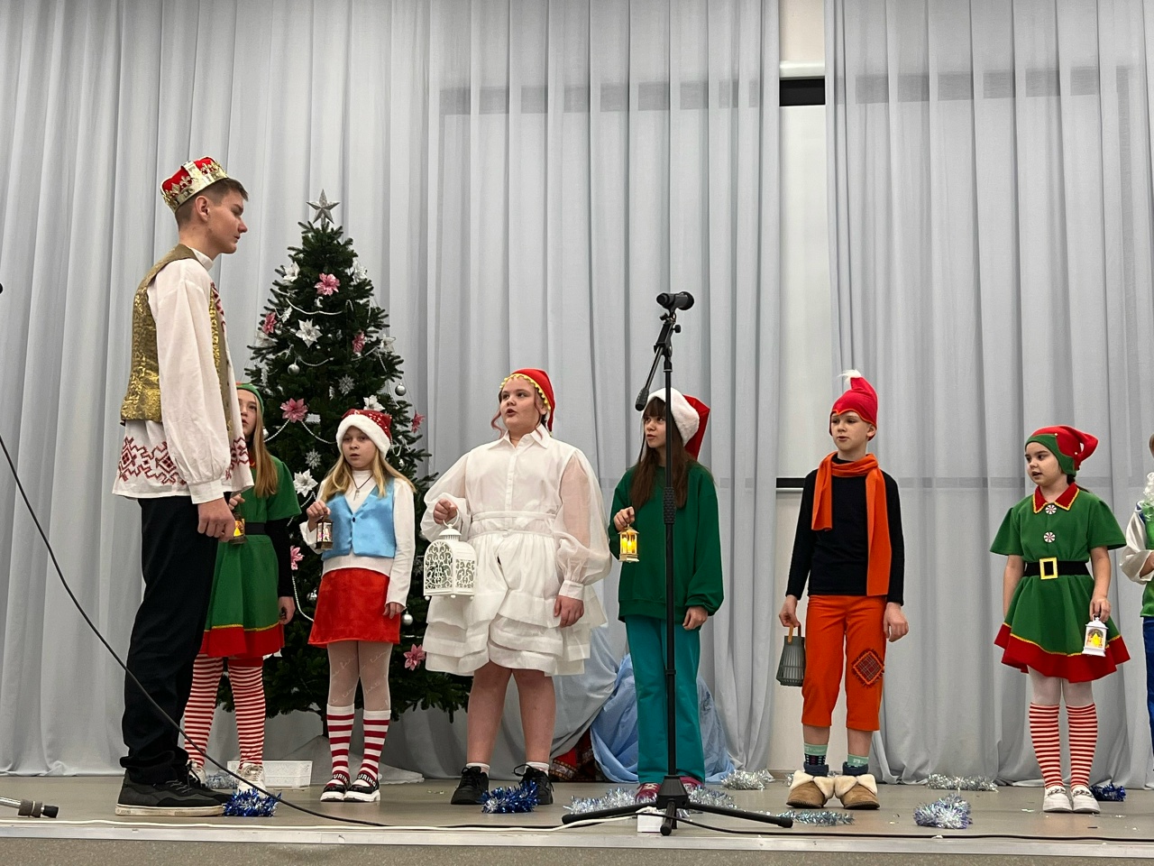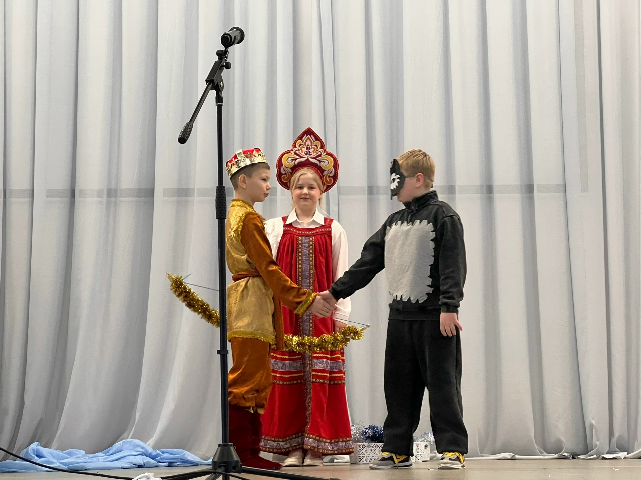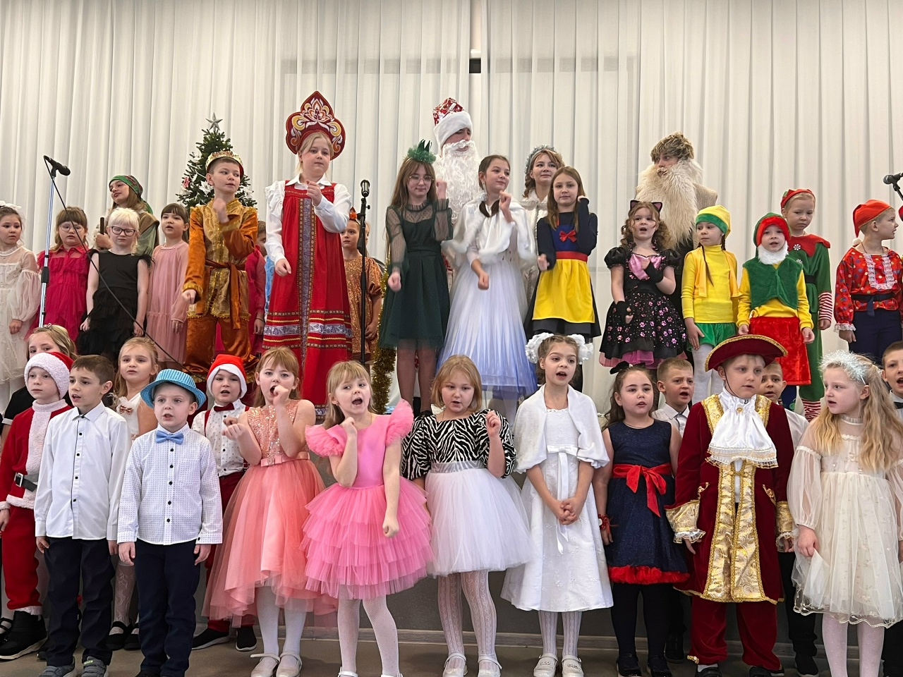 Представьте: озорные Баба Яга и Леший, прекрасная Белоснежка с гномами, мужественный Иван-царевич и мудрая Царевна-Лягушка, волшебница Зима и Серый Волк собрались в одной «Новогодней сказке сказок»! И наши дети были не просто зрителями — они были спасителями, помощниками и главными участниками этого приключения! Играли, танцевали, пели и выручали героев из самых сложных ситуаций.