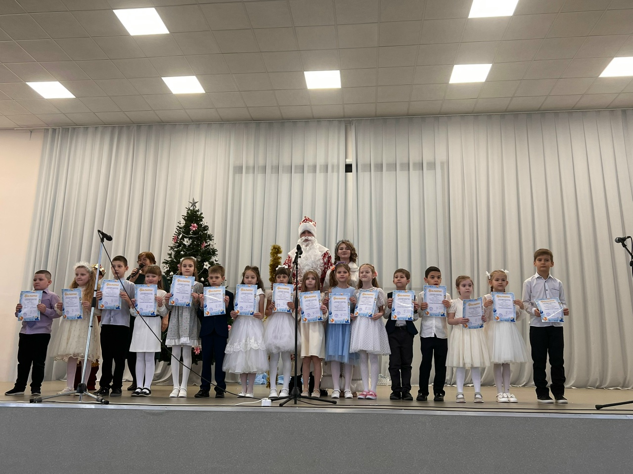 Самой большой радостью было получить заслуженные грамоты из рук самого Деда Мороза и Снегурочки за участие в творческих конкурсах «Снежная симфония» и «Новогодняя ёлочка»