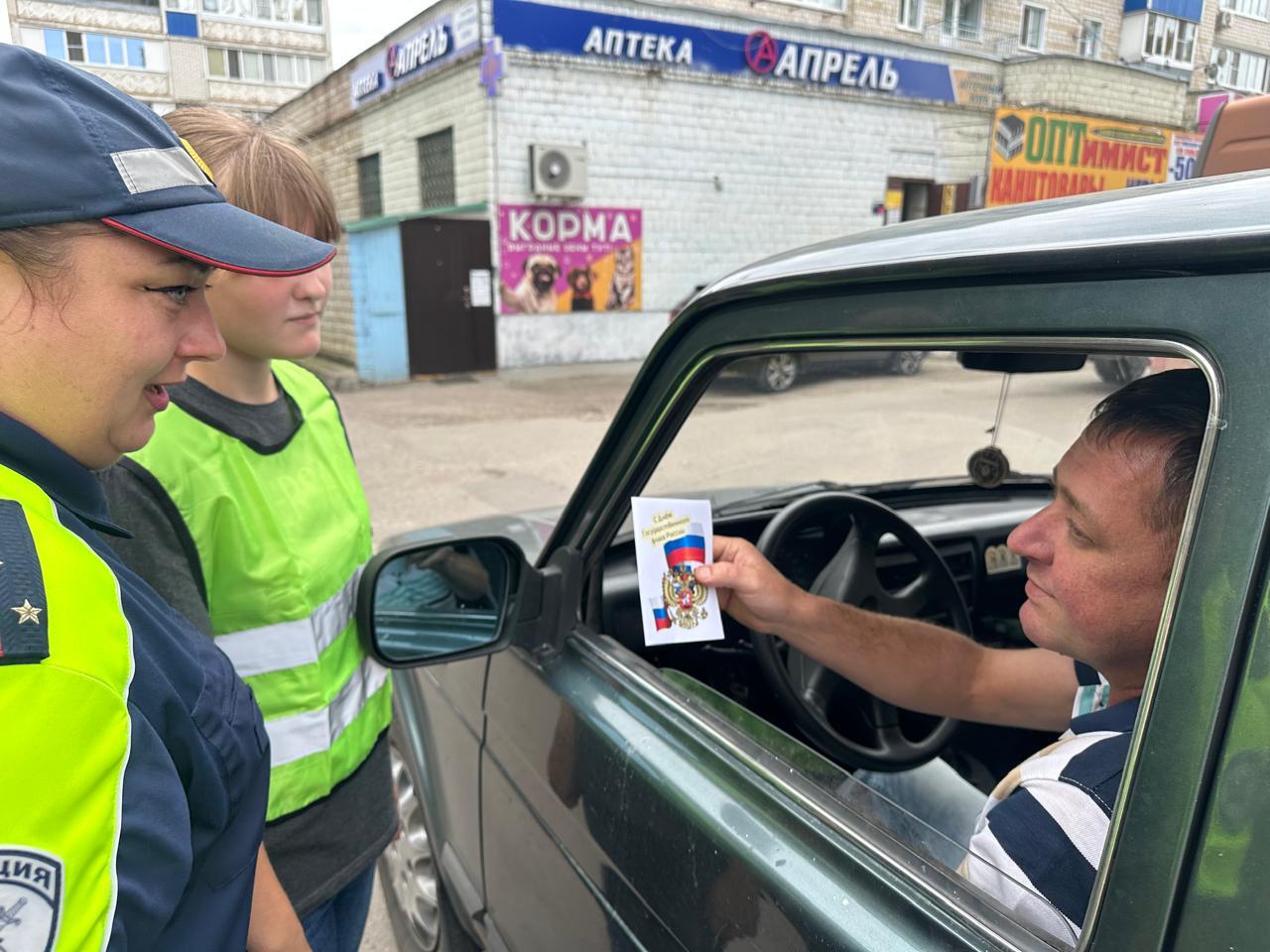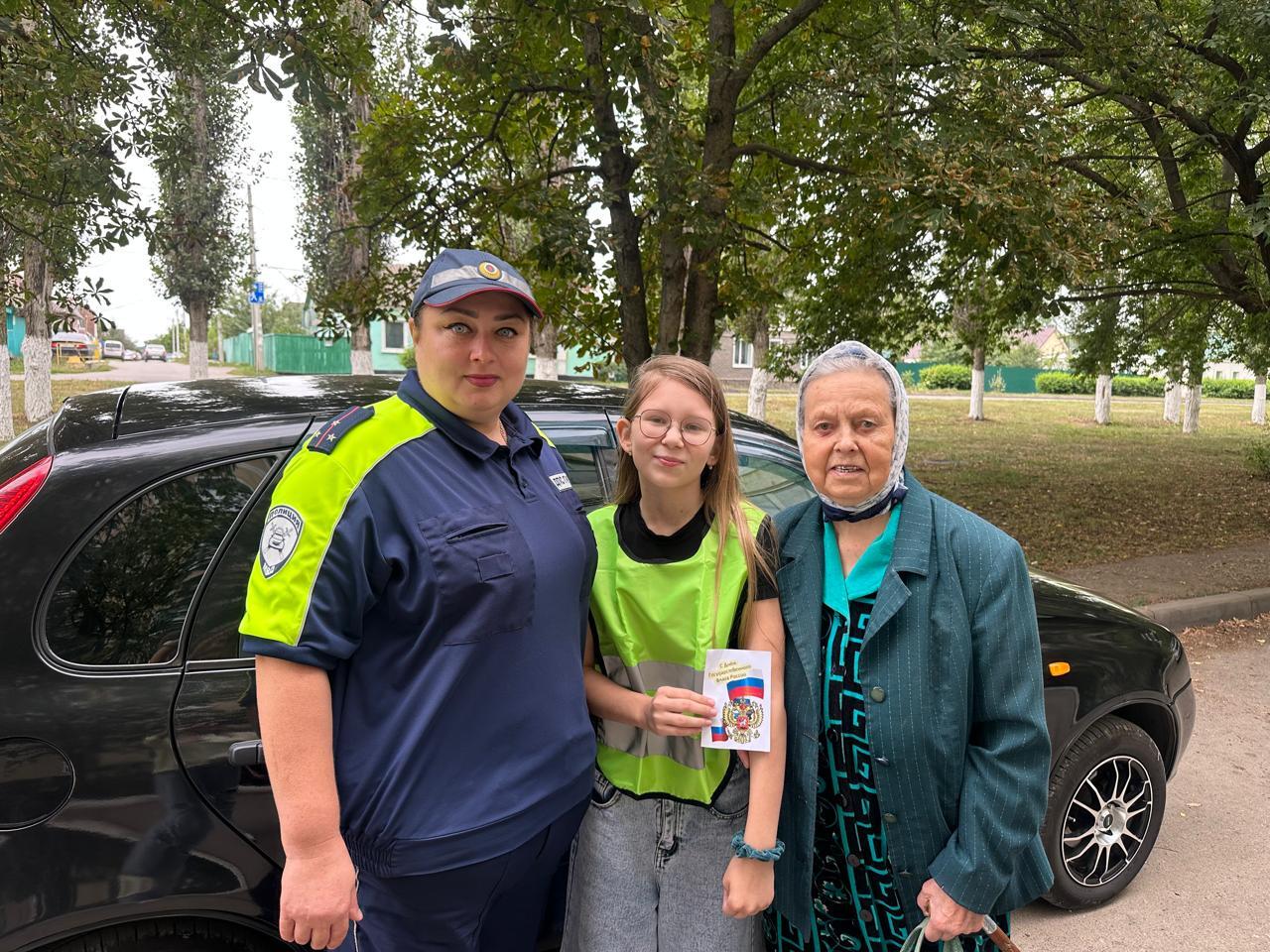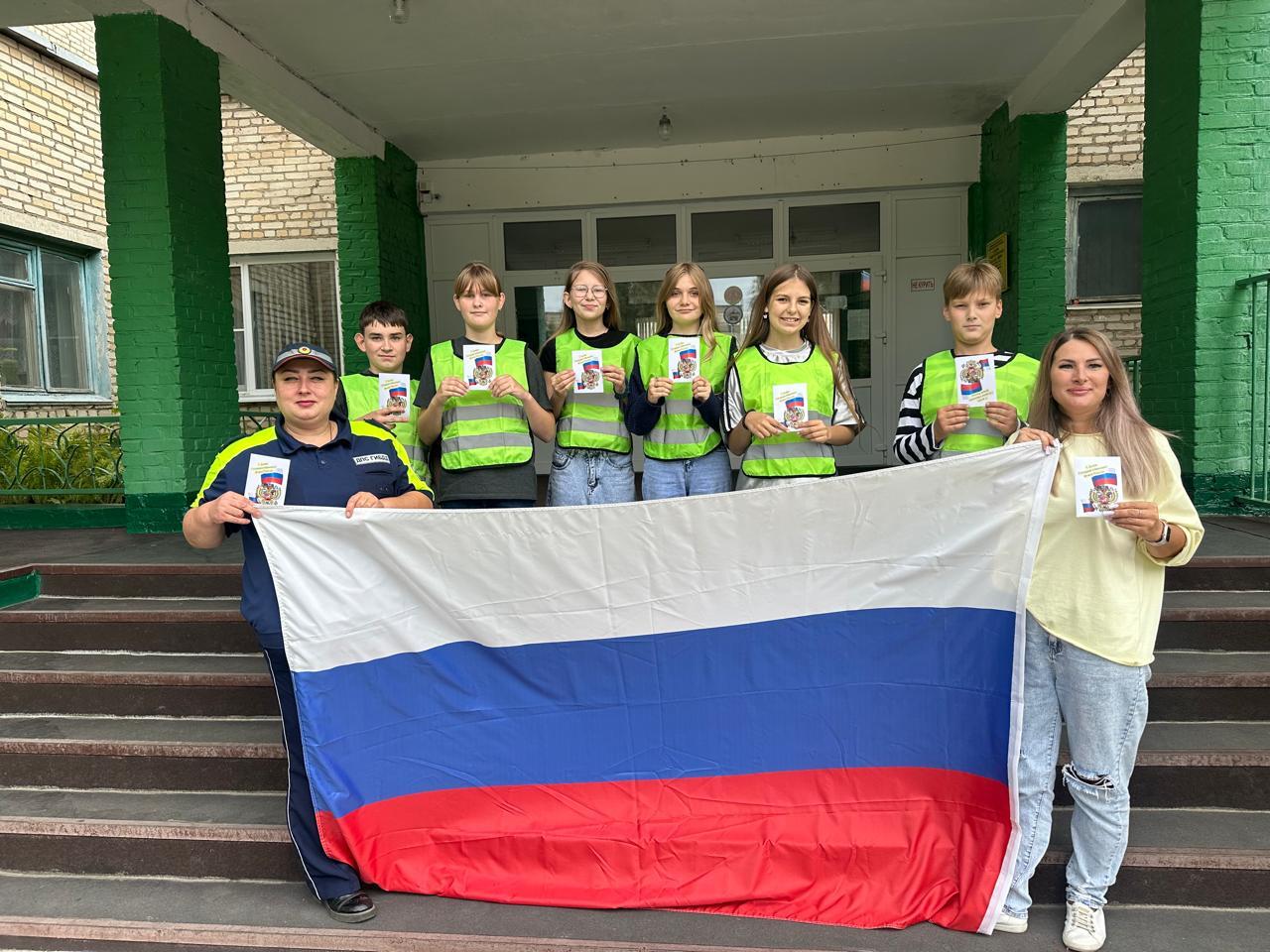 В преддверии Дня Государственного флага России школьный отряд Юных инспекторов дорожного движения совместно с инспектором ОГИБДД МО МВД Бахтиной Н.Н. и классным руководителем 6 «А» класса Баскаковой Л. В. приняли участие во Всероссийской акции «Я люблю родной флаг» .