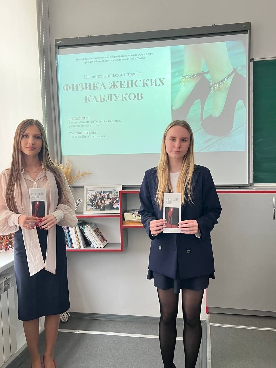 Большой интерес у участников мероприятия вызвали результаты исследовательской работы по физике «Физика женских каблуков» (руководитель проекта Киселева И.Н.) Горностаевой Арины и Ершовой Ангелины. (10 "А" класс). По результатам работы предметной комиссии их работа отмечена дипломом 1 степени.
