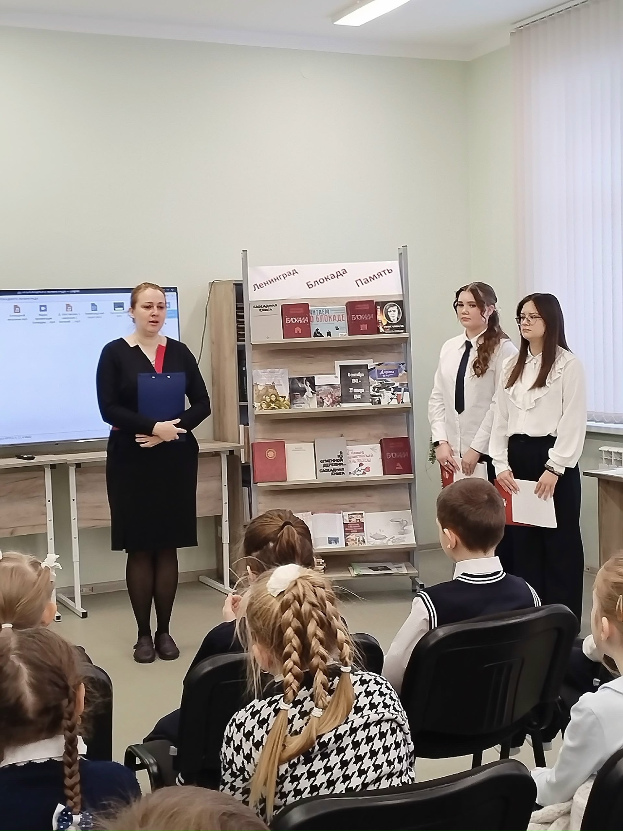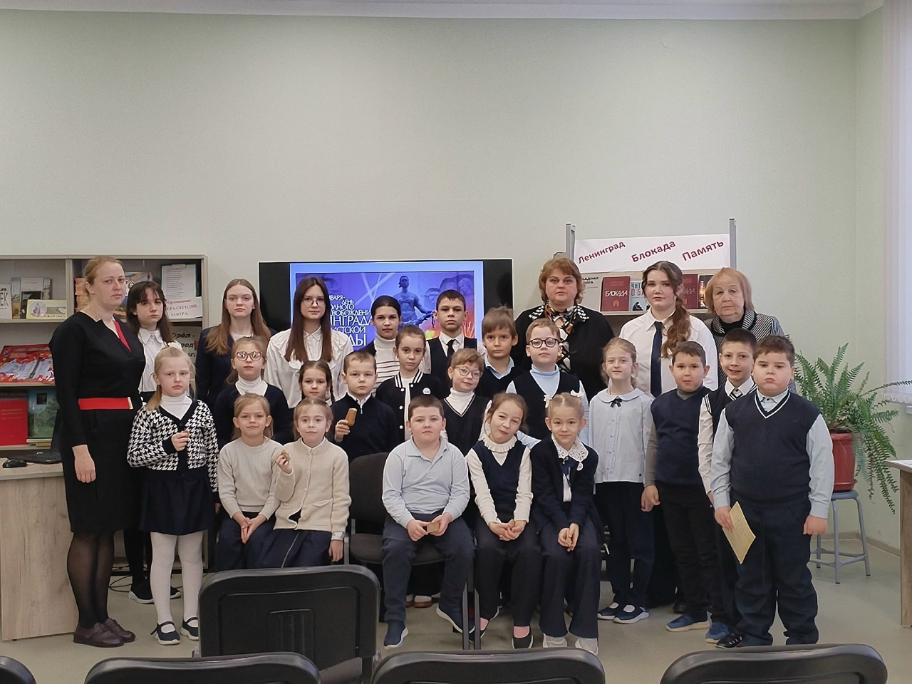Наши семиклассники рассказали маленьким слушателям о том, как по льду Ладожского озера везли хлеб и эвакуировали людей, о подвиге водителей, которые шли под обстрелом, и о цене каждого мешка муки. Первоклашки услышали, как звучит Метроном, и узнали о главном символе того времени — 125 граммах хлеба, суточной норме для многих ленинградцев.