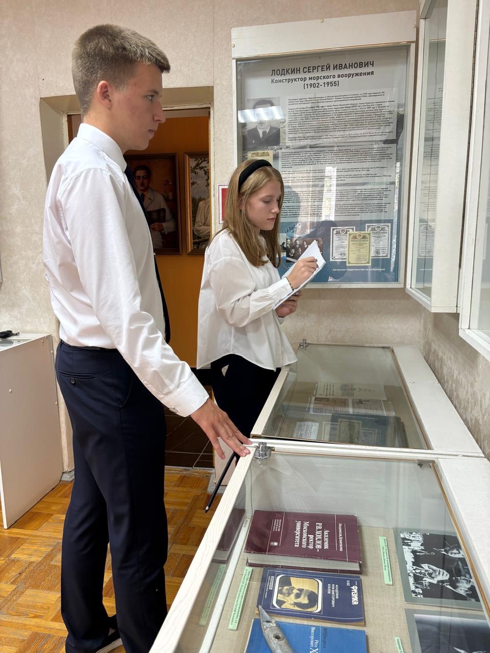 Заинтересовавшись историей кораблестроения и морской артиллерии, учащиеся 10 «А» класса Демидов Дмитрий и Болдырева Анастасия,готовят проект «Лодкин С.И.- конструктор морского вооружения» . С этой целью они посетили Ливенский краеведческий музей, где в зале «Знаменитые земляки», действует экспозиция, посвященная его жизни и работе, а также его семье.