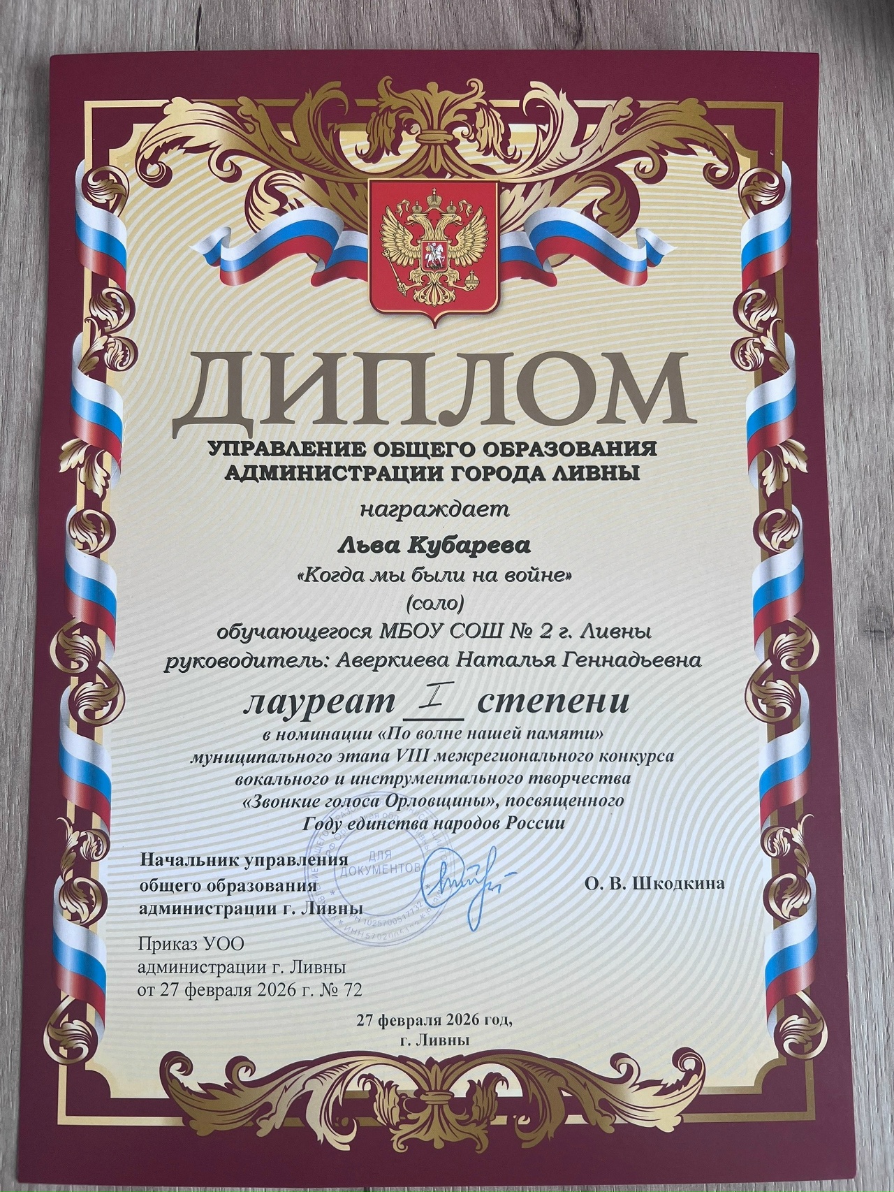 27 февраля наша школа стала площадкой для проведения муниципального этапа VIII межрегионального конкурса вокального и инструментального творчества «Звонкие голоса Орловщины», посвященного Году единства народов России.