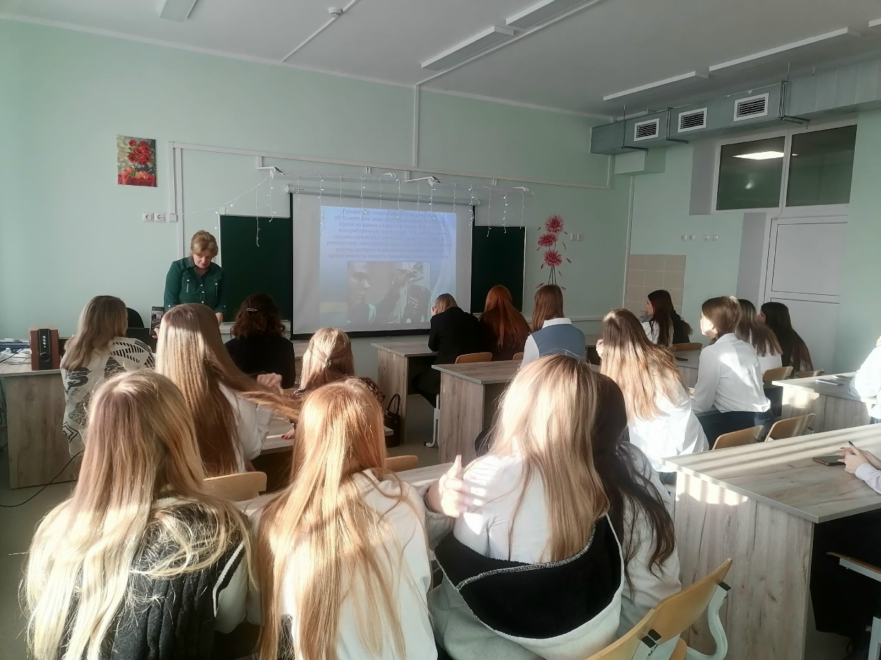 В рамках мероприятия обучающиеся получили представление о многообразии профессий, узнали как сделать осознанный выбор будущей профессии. Также на мероприятии присутствовала Леонова Э. В. - парикмахер, которая рассказала ребятам о тонкостях своей профессии, а также показала небольшой мастер - класс по укладке волос.