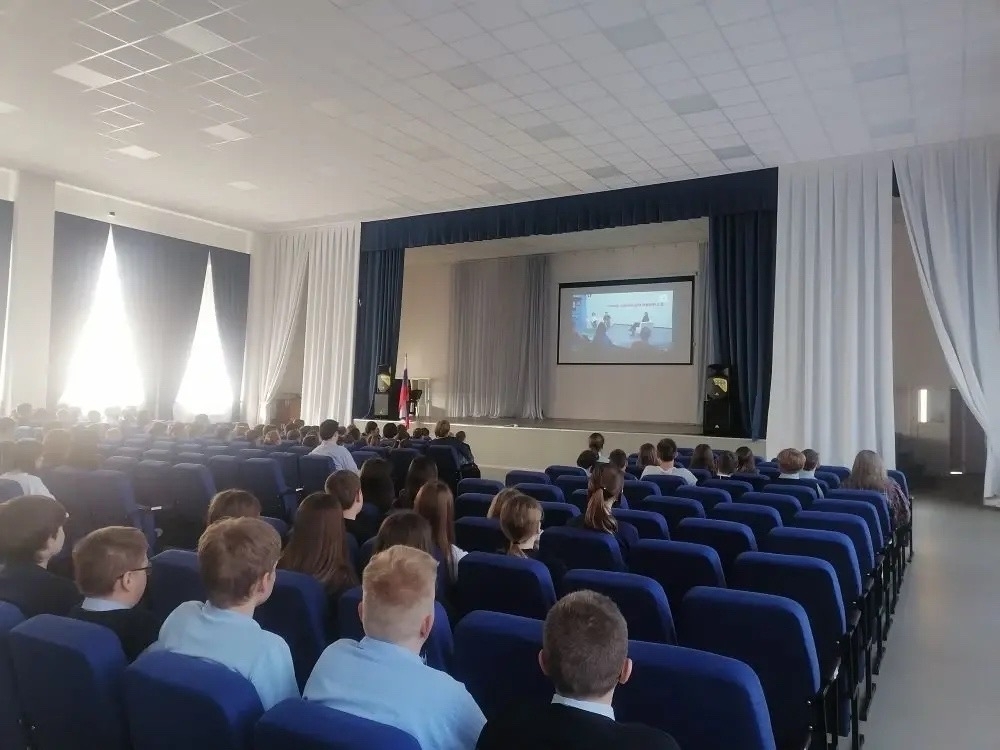 13 апреля ученики 7–8 классов собрались в актовом зале, чтобы посмотреть выпуск онлайн-марафона, посвящённый антинаркотической безопасности. Главный эксперт эфира — Мария Охтерлоне, начальник отдела межведомственного взаимодействия Управления по контролю за оборотом наркотиков ГУ МВД России по г. Москве.