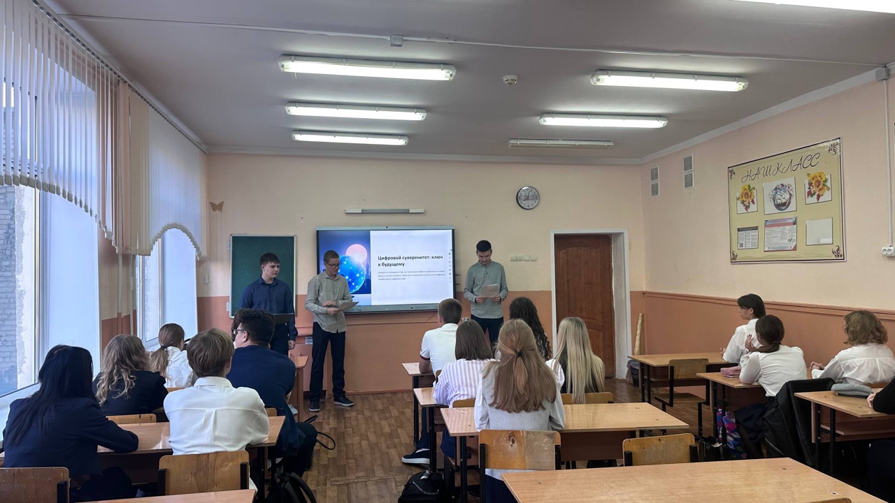 Школьникам объяснил концепцию цифрового суверенитета и его значимость для современной страны. Ребята узнали о том, как digital-технологии влияют на экономическую, политическую и культурную сферы жизни, а также о проблемах, связанных с зависимостью от иностранных технологий и сервисов. Поговорили о том, как важно иметь собственные технологии, развивать отечественные платформы и защищать наши данные. Обсудили, что цифровой суверенитет – это не просто модный термин, а основа безопасности, развития и независимости нашей страны в современном мире.