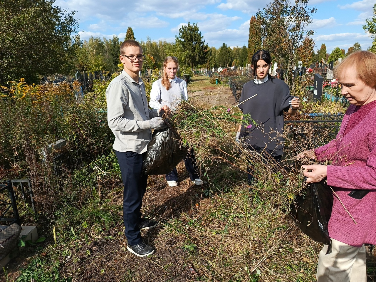 15 сентября, ученики 10 "а класса, классный руководитель Трубицина Т. Б., состоящие в школьном юнармейском отряде «ПАТРИОТ» и волонтерском отряде «Новое Поколение» провели уборку на могилах нашего известного земляка и его сына.