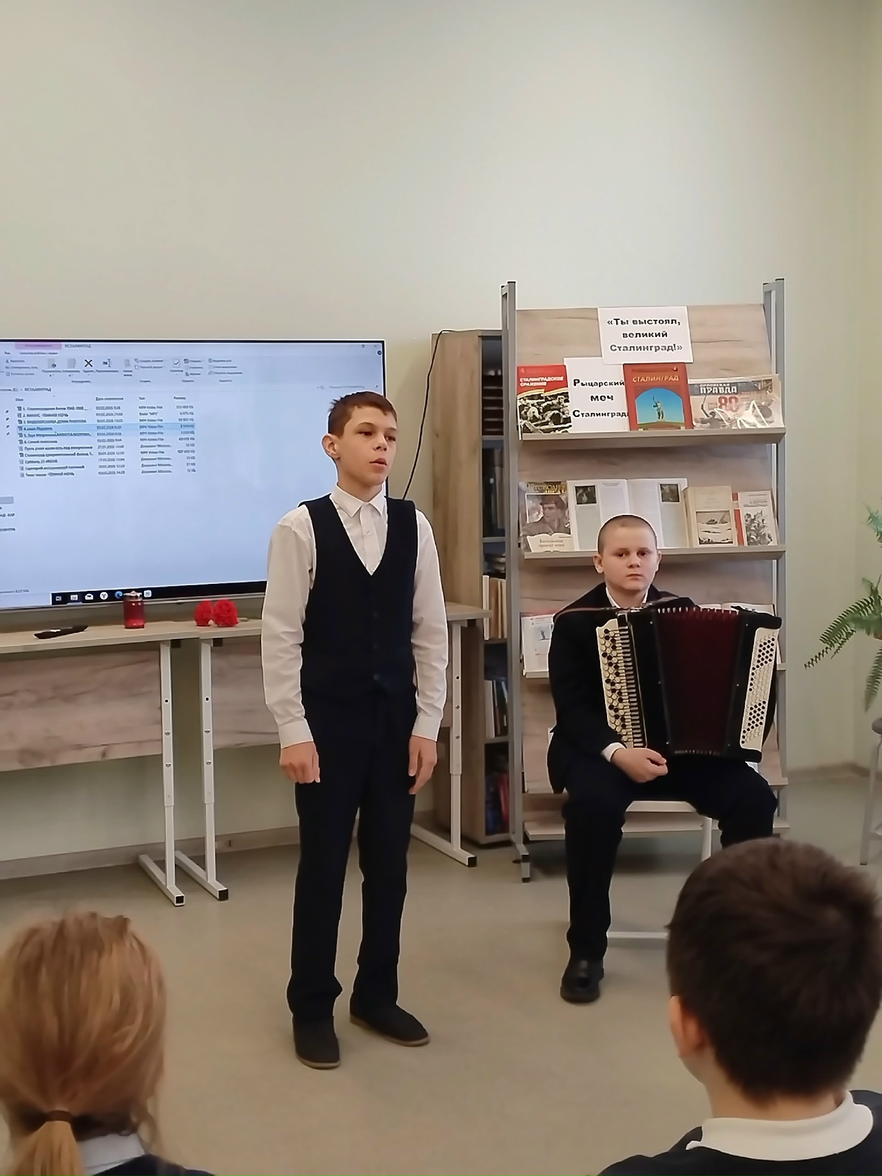 В завершение заведующая библиотекой Буланников Е.А. сделала очень важный акцент: подвиг сталинградцев — это «непридуманная история». И хранится она не только в камне мемориалов, но и на страницах книг.