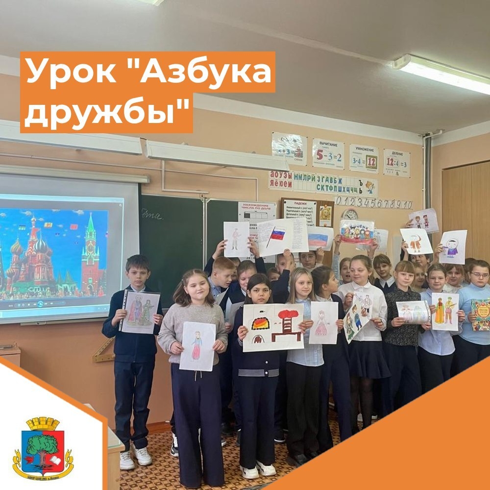 6 ноября, в рамках внеурочной деятельности на занятии по курсу ОДНКНР для учащихся 4-х классов прошли уроки «Азбука дружбы», приуроченные ко Дню народного единства. Уроки прошли под девизом: «Мы разные – в этом наше богатство, мы вместе – в этом наша сила!» На этот раз активными участниками занятия стали герои анимационных фильмов. Вместе с мультипликационными персонажами ребята вспомнили о том, как велика и красива наша Родина, как богата событиями её история, закрепили свои знания о государственных символах, послушали рассказы про разные народности, населяющие нашу страну, узнали много интересных традиций.