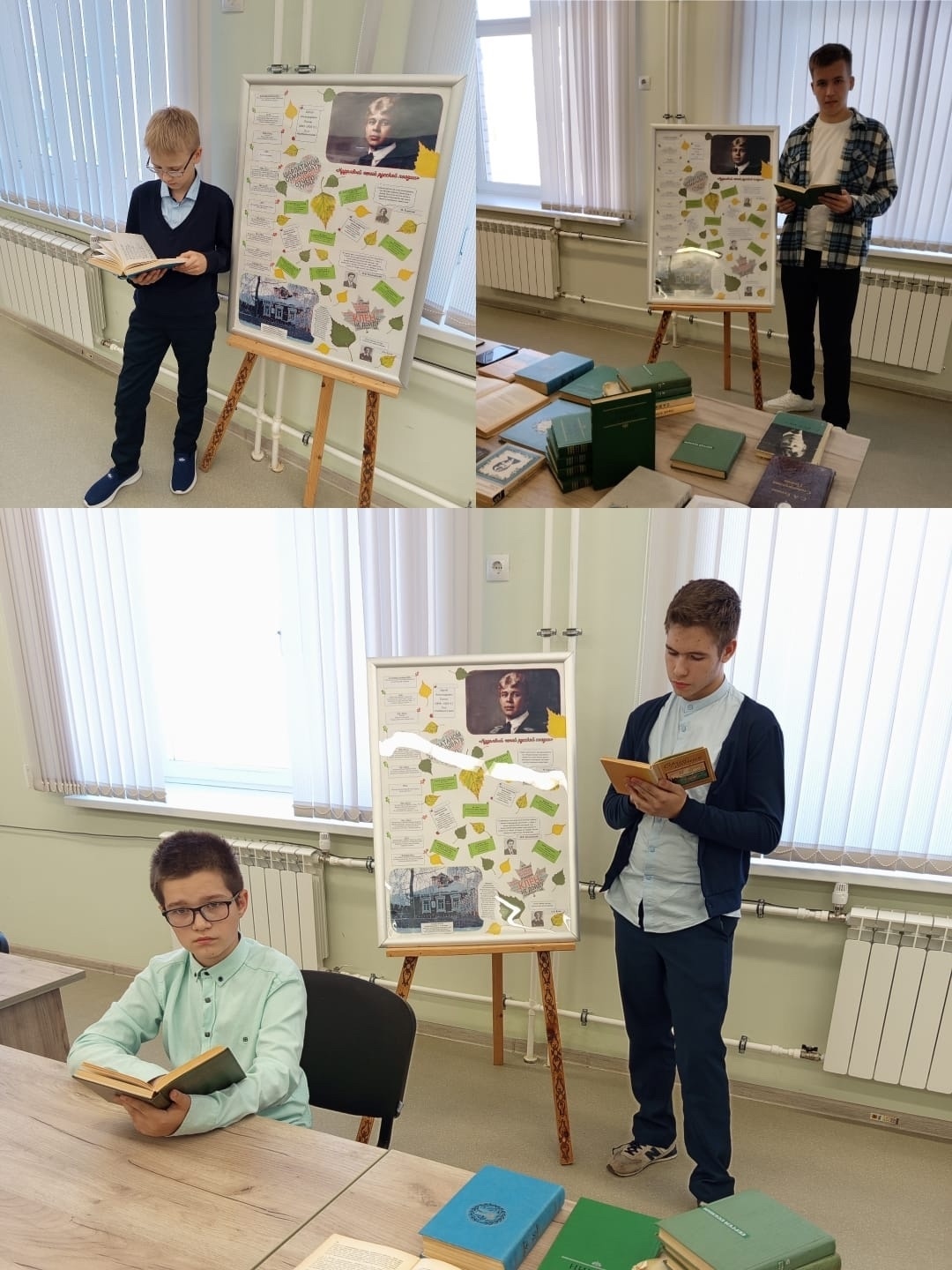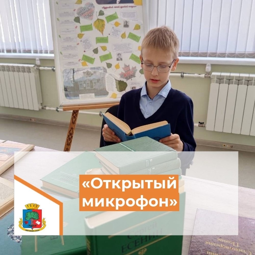 Открытый микрофон в школьной библиотеке приглашает к чтению стихов Есенина с листа и наизусть. Сегодня это предложение приняли Дмитрий Демидов (10А), Владислав Голубцов (9Д), Ярослав Шешин (7А), Артём Буланников (5Г).