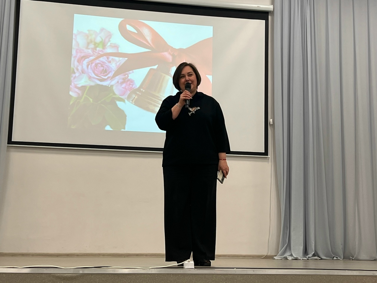 Праздничную программу, которая помогла всем ненадолго вернуться в чудесную пору, подготовили нынешние ученики и педагоги. Они постарались воссоздать ту самую атмосферу и показать, что школьные традиции живы! С тёплым приветственным словом ко всем обратилась директор школы — Дорофеева Елена Ивановна.