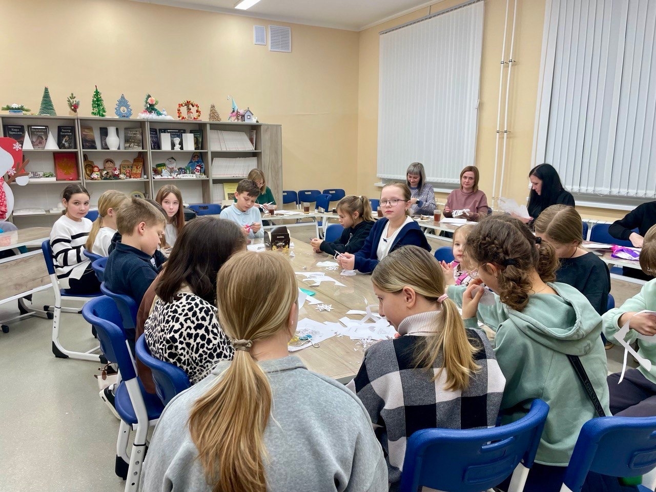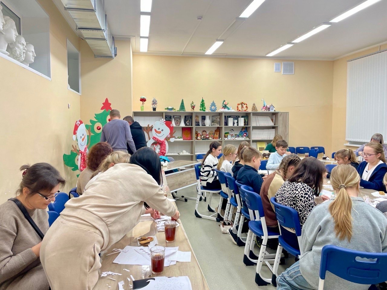 А потом началась магия! Учебный класс на время превратился в мастерскую Деда Мороза. Вместе с детьми родители мастерили ажурные снежинки, украшения для окон и создавали уютное новогоднее настроение. Под звуки любимых зимних мелодий все вместе украшали класс, пили душистый чай и просто радовались общению.