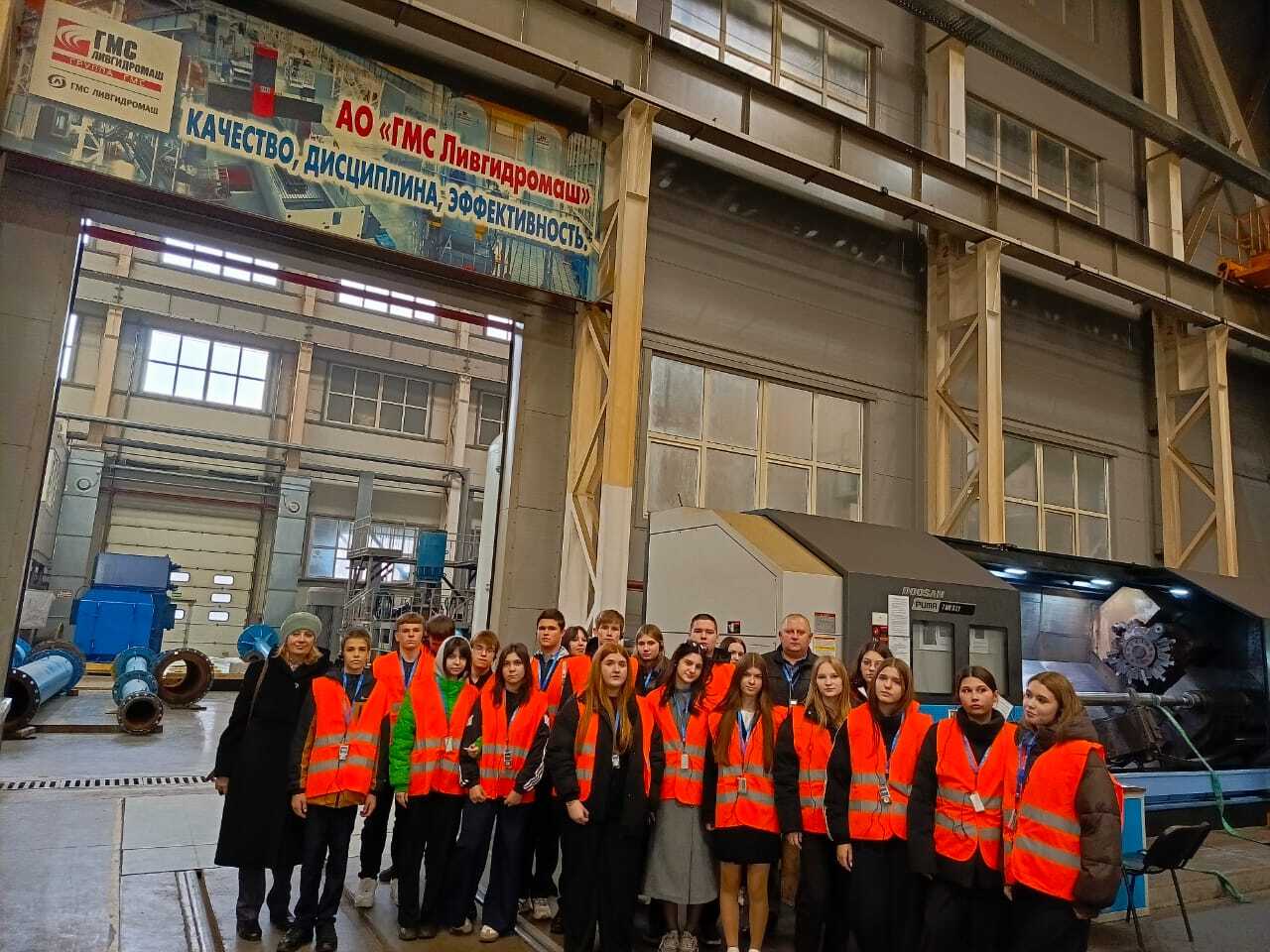 16 октября ученики 9-го класса в рамках профориентационной акции «Неделя без турникетов» посетили с экскурсией одно из градообразующих предприятий нашего города Акционерное общество "ГМС Ливгидромаш". Цель экскурсии - познакомить ребят с историей крупнейшего завода города , дать общее представление о современном производстве, познакомить их со структурой предприятия, с условиями и спецификой работы, продемонстрировать производственный труд и познакомить с современной техникой производства.