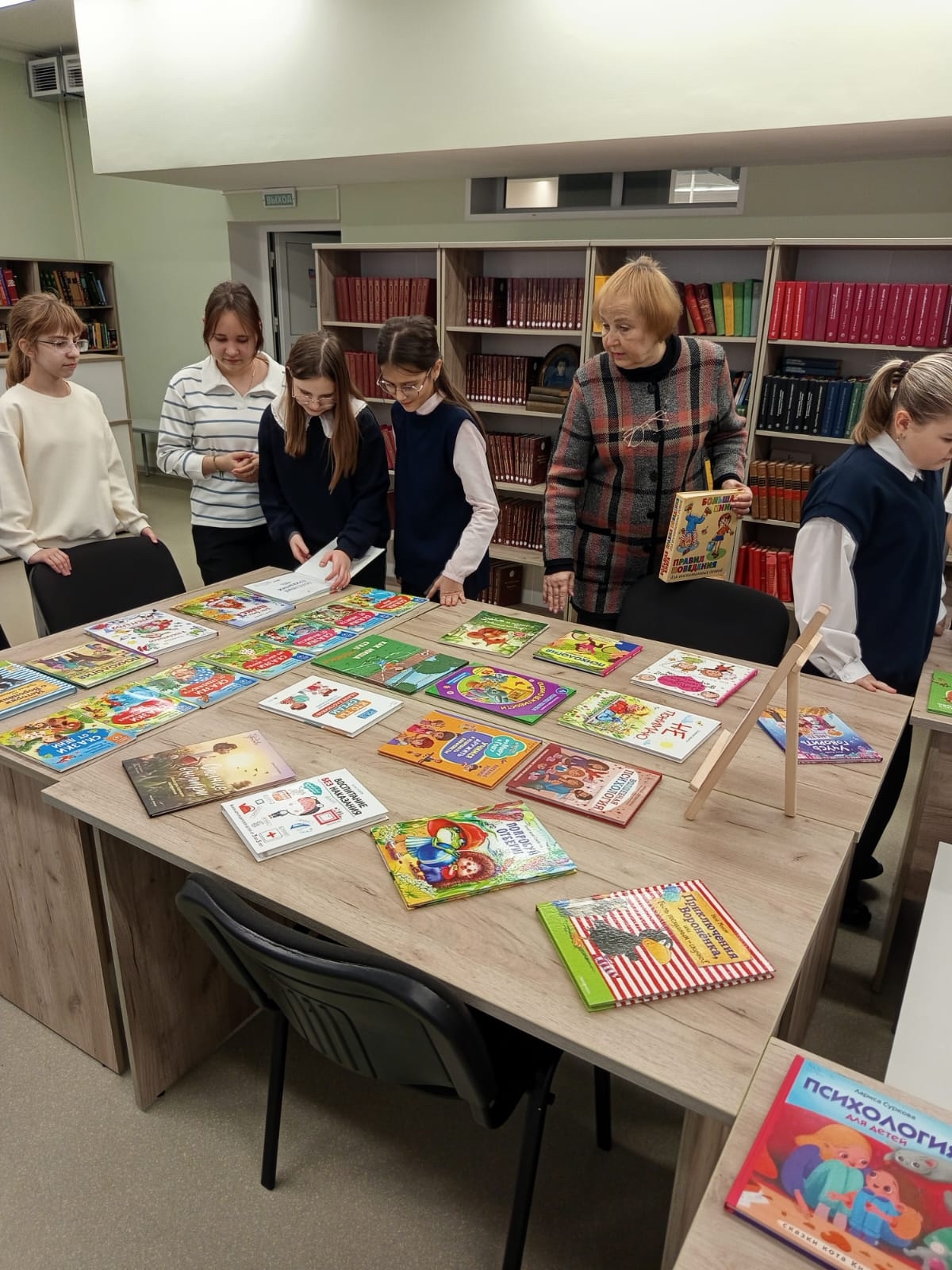 Выставку уже посетили учащиеся 5-6 классов. Педагог –библиотекарь и психологи познакомили ребят с книгами и дали различные советы школьникам. Особенно детям понравились «Как ходить в школу с удовольствием», «Как не ссориться с родителями» и другие. И в конце беседы все пришли к выводу «Лучший путь к успеху- влюбиться в то, что ты делаешь».
