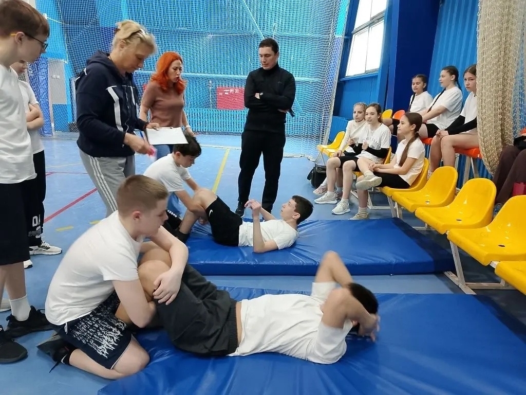 День первый. Спортивное многоборье. Юные атлеты проходили тестирование по нескольким дисциплинам: гибкость, пресс, подтягивание и отжимание, прыжки в длину с места, бег 30 метров в зале и, несмотря на погоду, километр на улице. Соревнования проходили раздельно среди юношей и девушек и носили лично-командный характер.