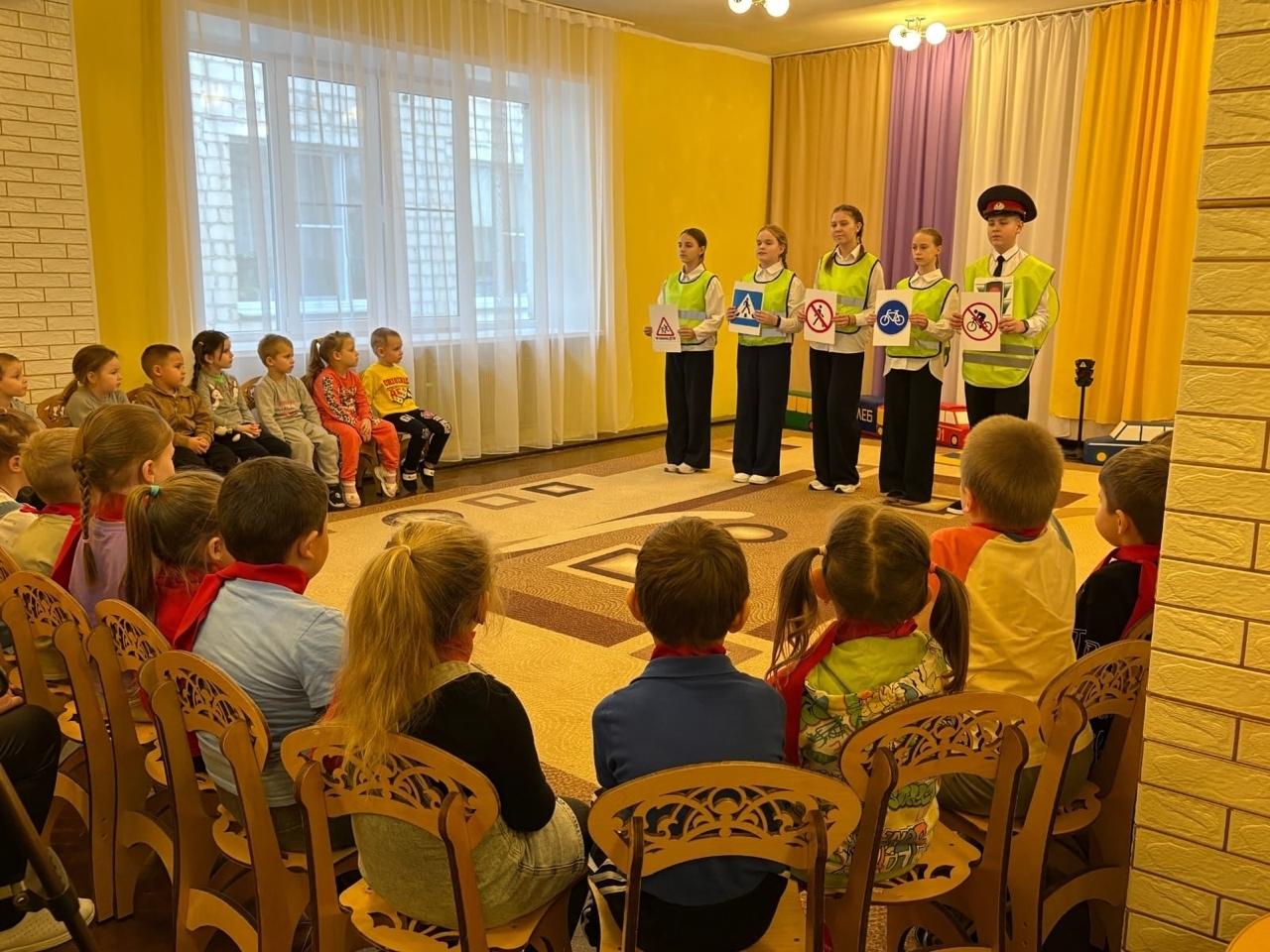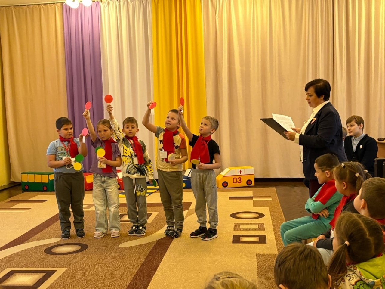 Агитбригада ЮИД активистов "Движения Первых" под руководством советника директора по воспитанию Неказаковой В. В в рамках Всемирного дня памяти жертв ДТП провели профилактическое мероприятие для воспитанников детского сада 6 города Ливны .