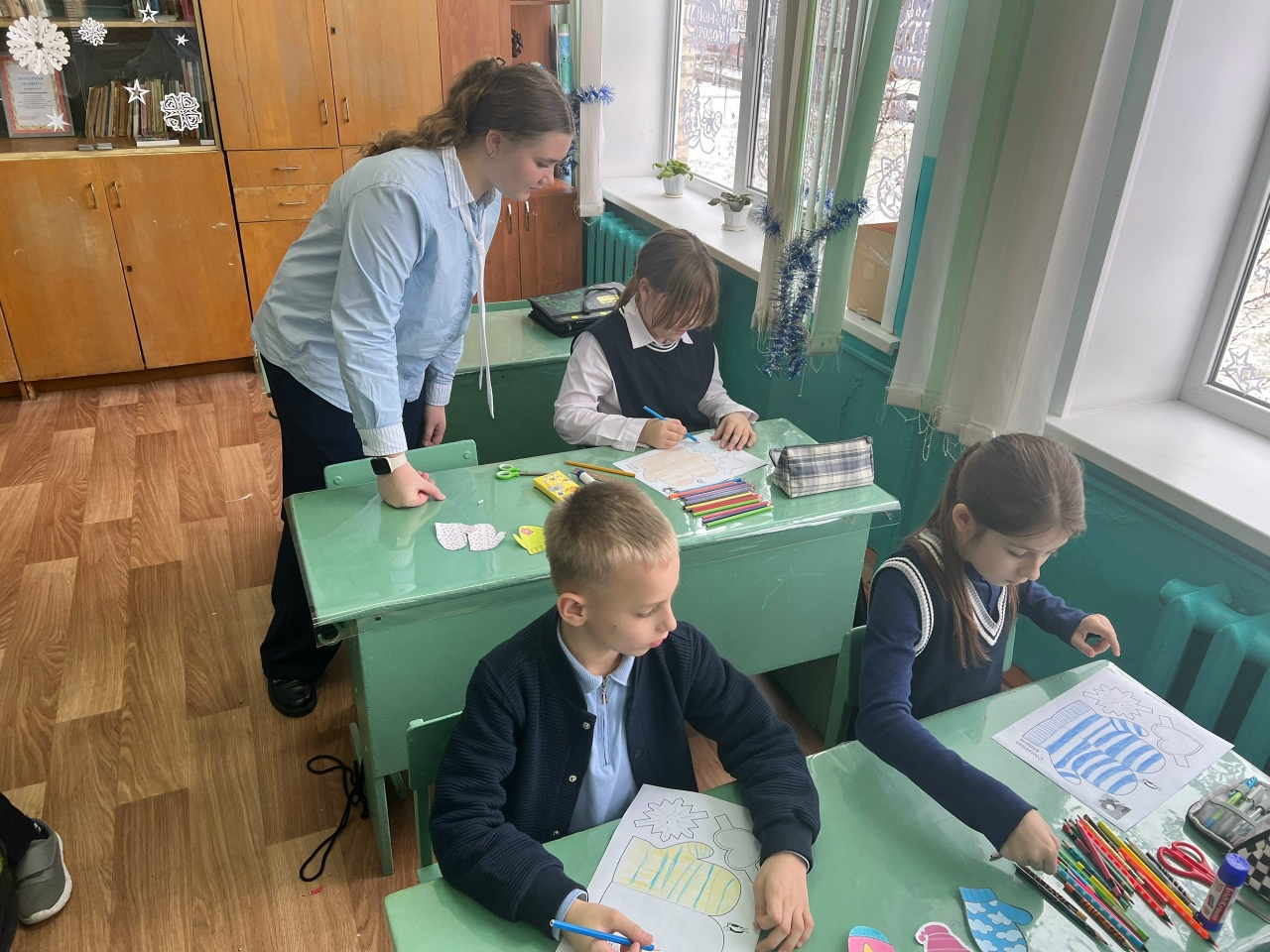 В преддверии Нового года они провели для своих младших товарищей из 3«Б» мастер-класс «Варежка добра». Вместе ребята создали открытки- варежки для военнослужащих, участников СВО, которые несут свою службу.