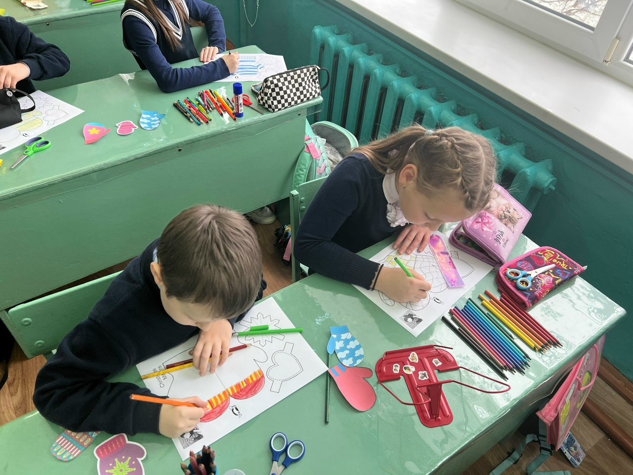 А потом началось самое важное — творчество. Под чутким руководством семиклассников третьеклашки превратили простые заготовки в яркие открытки-варежки. Каждый узор, каждый рисунок был наполнен теплом и любовью. А внутри ребята написали самые искренние пожелания нашим военнослужащим, участникам СВО.
